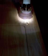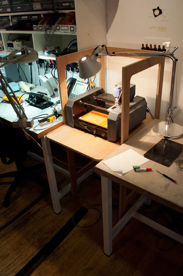 The board the modela stands on sit's in a slit in the wood, this might enable the user to pull the modela forward into view, or push it backward into a sound-dampening closet (for longer milling run's)
