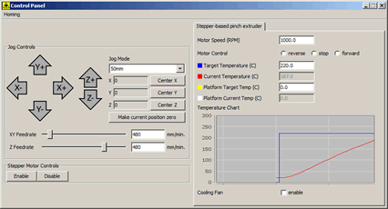 Also, the machine reports it's nozzle temperature wrong to the program. therefore it starts printing before the nozzle is at working temperature. this is resolved by manually setting the nozzle temp to 220 deg C and waiting until the nozzle is at working temperature.