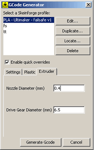 Another intresting thing to note is that altough the Ultimaker ReplicatorG still has it's 'Manual control' button, most of the functions won't work, or work not quite as i would expect..