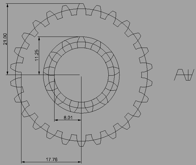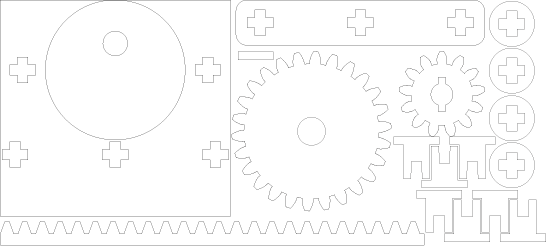 I also drew pressfit crosses to act as axles to my laser-cut gears.
