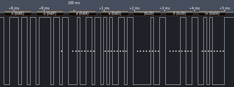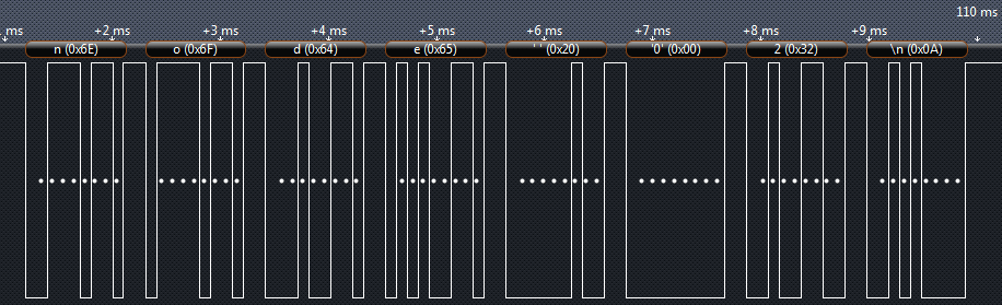While i was figuring out the actual communication speed, i noticed that the code was sending an extra byte (0x00) after 'node '