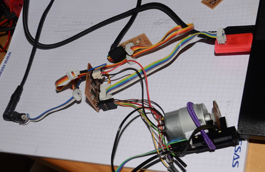 Currently the setup is only using one optical slot sensor. this one is connected to Int0 on the microcontroller. This way counting and controll can be done whilst waiting for incoming controll characters.