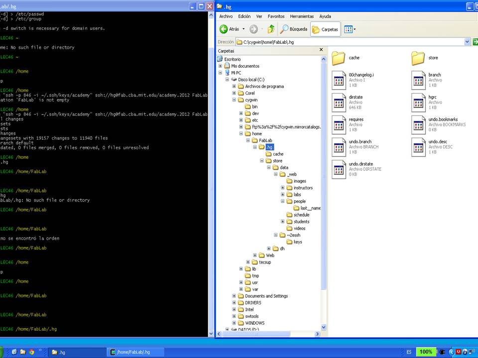 The following pictures shows: the first one, the commands for repository clonning (at left) and how is the structure in a windows view.