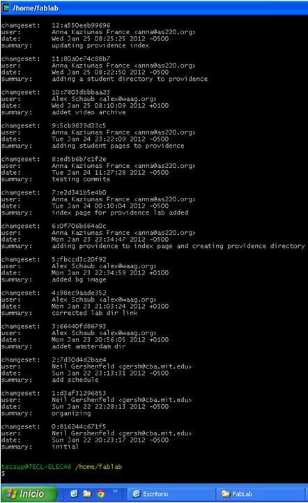 hg init (start archive) hg pull (pull from archive) hg log (history)