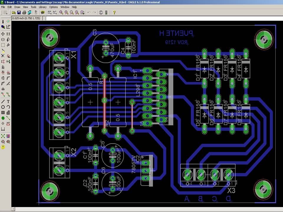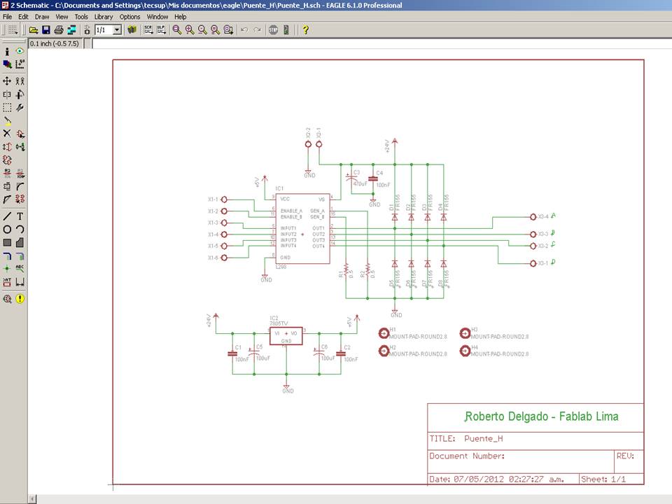 The assignmente for this week is to automate the machine assembled two weeks ago. For this Roxanna milled the Arduino's shield for controlling the steppers, but Alejandro found that we haven't all the components for stuffing, specially the A3982 - stepper motor driver, so as was impossible to get it locally, I decided to design a new one using the L298 (Dual full bridge drive) because it has also the possibility to work with the Arduino Uno at the Fablab.