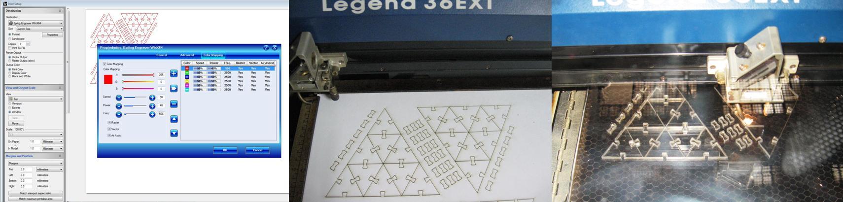 Laser cutting, parameters for acrylic are, speed=10, power=100, frequency =500, resolution=600 |