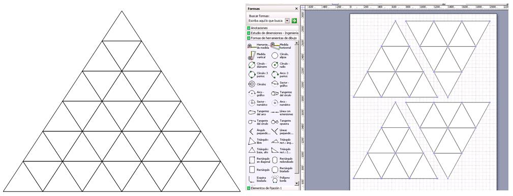 First I used Microsoft Visio to make a rapid sketch to define the dimension of each face of the pyramid and the dimensions of single equilateral triangles |