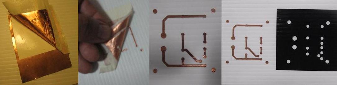 I made the transfer of the copper clad on plastic cardboard. It's something difficult, but helps a lot if you make some cuts to the copper to be removed. |