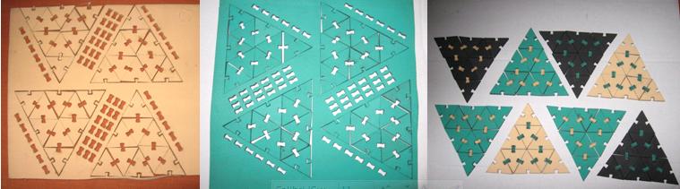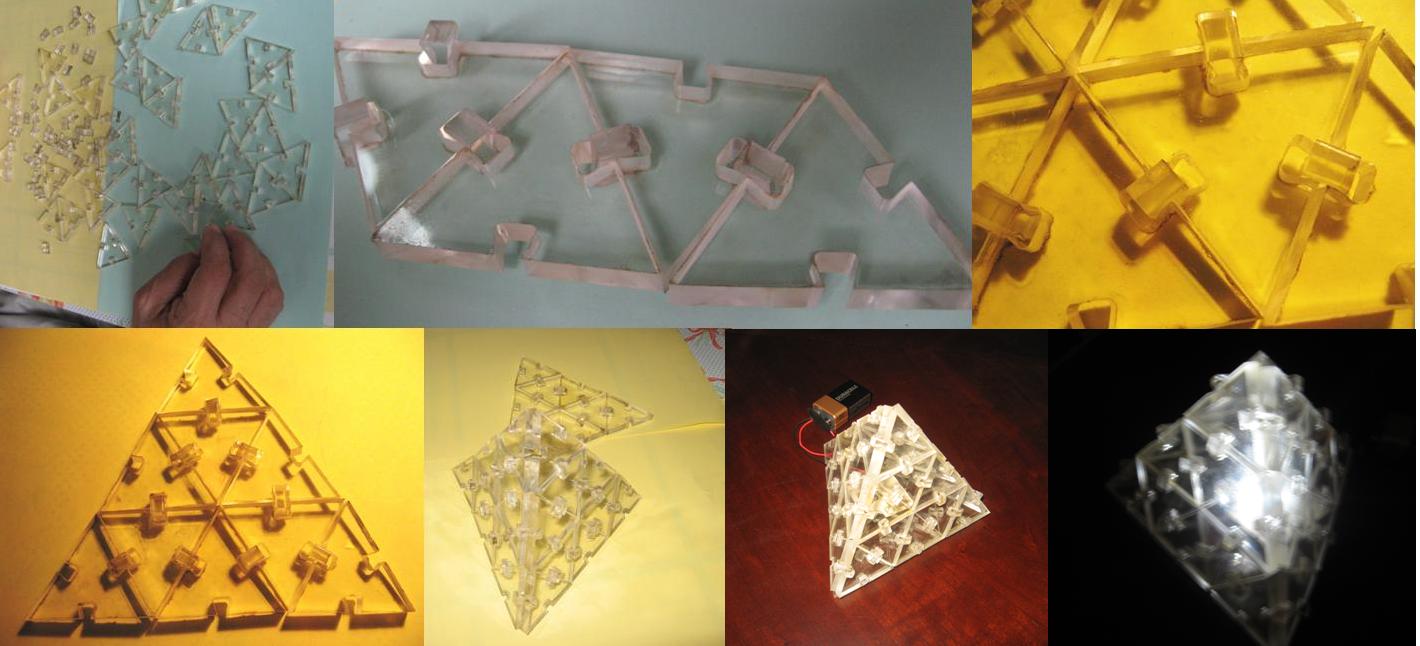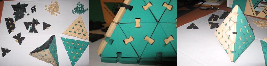 Laser cutting of the kit. I used a soft foam and the assembly of the pyramid faces was easy, because the foam stretched a little when I placed the prees fit piece to joint the individual triangles |