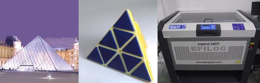 This week assignment deals with design and make a press fit construction kit, using a laser cutting tool. I was inspired by models of pyramids shown in the Figure. So I decided to build a pyramid with equilateral triangles and four faces, because an n-sided base will have n + 1 vertices, n + 1 faces, and 2n edges. |