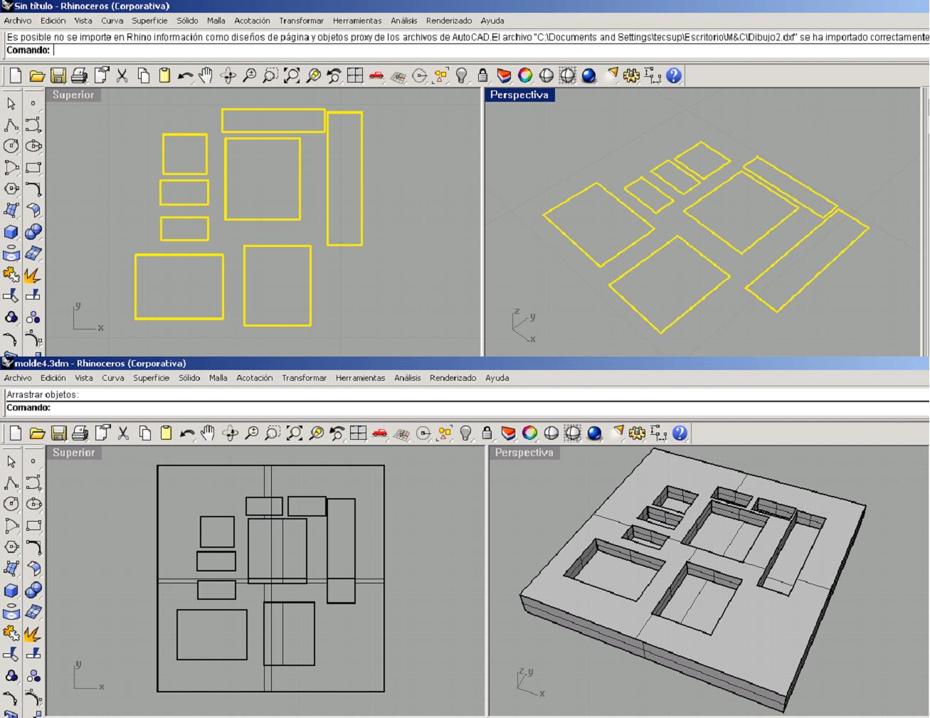 Importing the dxf file with Rhino to design the dispenser in 3D.