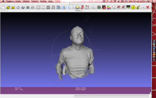 The idea here is to use an XBOX Kinect to 3D scan our faces. The Kinect uses the Light Coding technology. It's tricky but it works well enough if you are patient. You have to learn how to move very slowly to avoid any bug from the Kinect. The best way to make a good 3D scanning with Kinect is propably to stay sat on chair that has wheels so as to make a very slow turn on yourself.