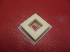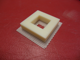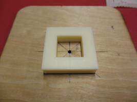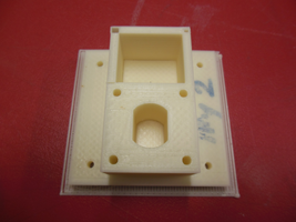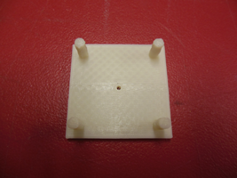 Here is a block I 3D printed on the Thing'O'Matic. I made it with Illustrator CS5 and C4D. The hole inside will the motor's wheeling pin. The idea it to temporarly place the motor on a wood platform, to center the block, and then to put some liquid plastic into the hole so that the motor's pin cannot separate from the wheel.