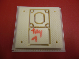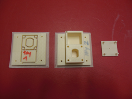 Here are the parts I have also been working on before leaving Providence. There is a 3D printed box I conceived for the DC motor on C4D. The Makerbot, once again, didn't work well and I had to stop the try 1 because the base of the object was bending. By chance, the object on try 2 was properly leveled on the upper side of the volume despite the bending. It took 7h48 to print it with a 25 % fill. The scale I used was +9.6. I assume I should have scaled it at 10 because the hole is just a little smaller than the dc motor I have (3/4 mm). I would need to adjust it and print it again. The 3D files below were corrected because the volumes were kind of inserted one into another and this produced some unwanted shapes on the prints.