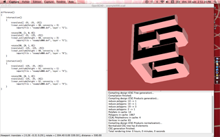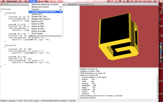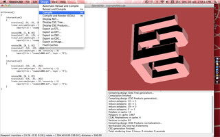 OpenScad is very sober and based on a script. I tinkered with it a few minutes, changing some values in the code, compiling, rendering, etc.
