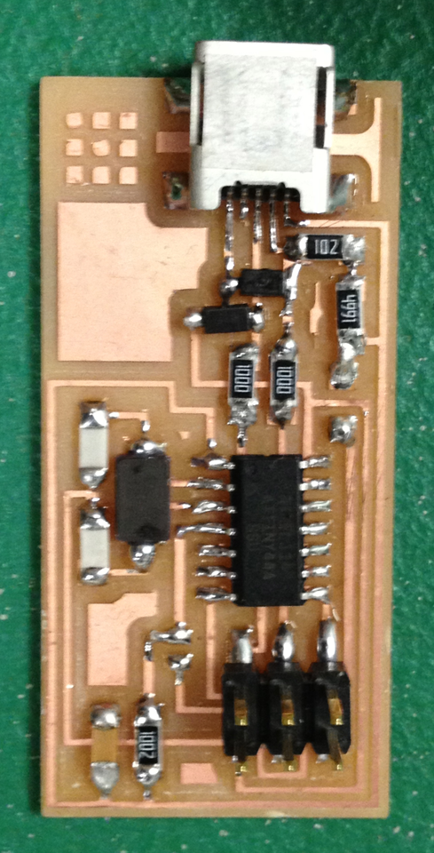 For now, you have a board. You need to test it to see if your board is "alive". You plug it to your computer with the mini USB cable. You go to the apple > about this mac > more infos > system report > material > USB. You might see the fABiSP showing up in the list of devices. If you don't see your FabISP in the list, try to unplug and replug the mini USB or the FTDI or both. Use another USB port. Close the System report window and open it again.Now you have XCODE, AVR and the firmware files on your desktop (out of the folder). You open Terminal (mac). Now, we are going to program the board from Terminal.