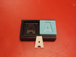 Once the mold was done, I casted it with blue silicone. After that I made a letter with liquid plastic from the silicon mold. All those materials dry very fast (between 15 to 30 min).