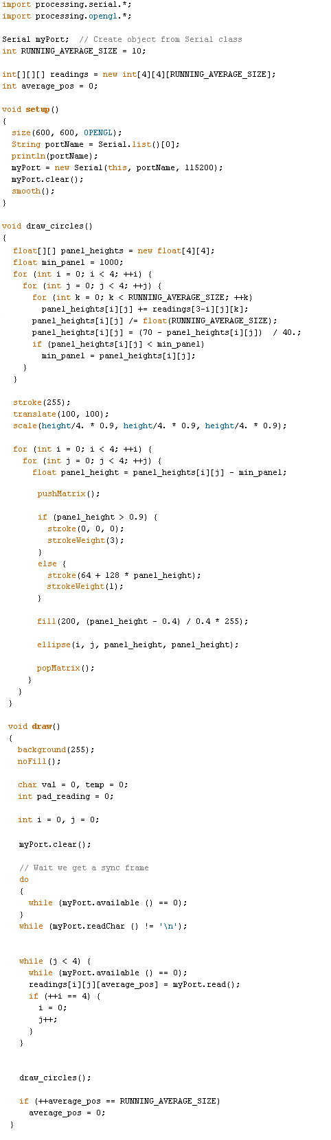 After all I did was to link the growth of the circles with the signal from each pad when touched with finger.