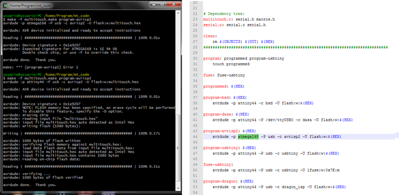 - Program the tiny 44 // make -f multitouch.make program-avrisp2