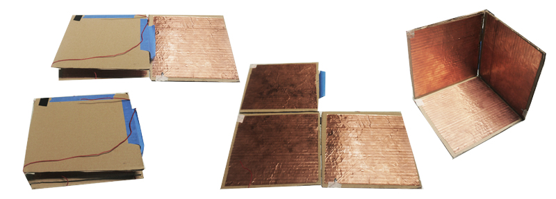 the first prototype I made with common materials such as cardboard and copper. The idea was just to see if it worked.