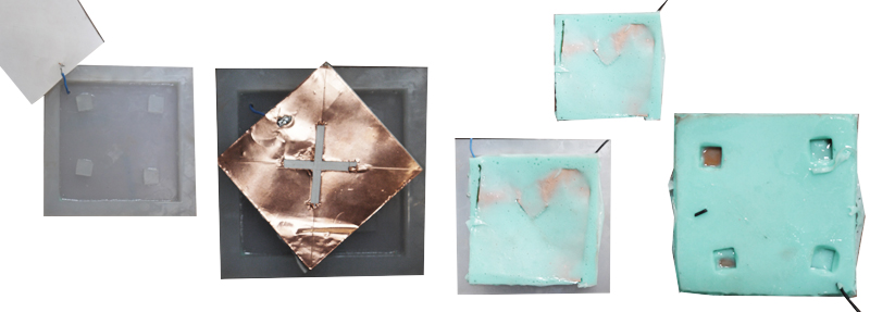 This prototype was made with the idea of a sandwich, by the outer two plates were metraquilato and inside a copper and a latex, which function to isolate the interference from outside.