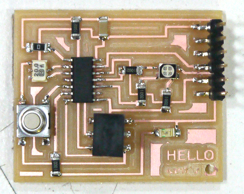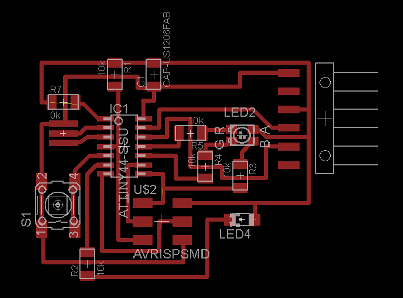 The RGB LED is attached to PA2, PA3, PA5. Because PA5 is MISO, the Blue LED's blink when the board is being programed. The LED's are setup in inverse mode, so when the PIN is HIGH, there is no path to GND
