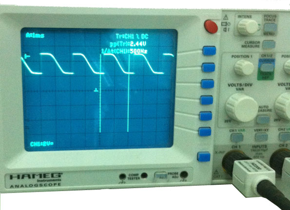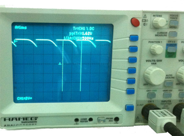 Cheking the change on the LDR using the oscilloscope.