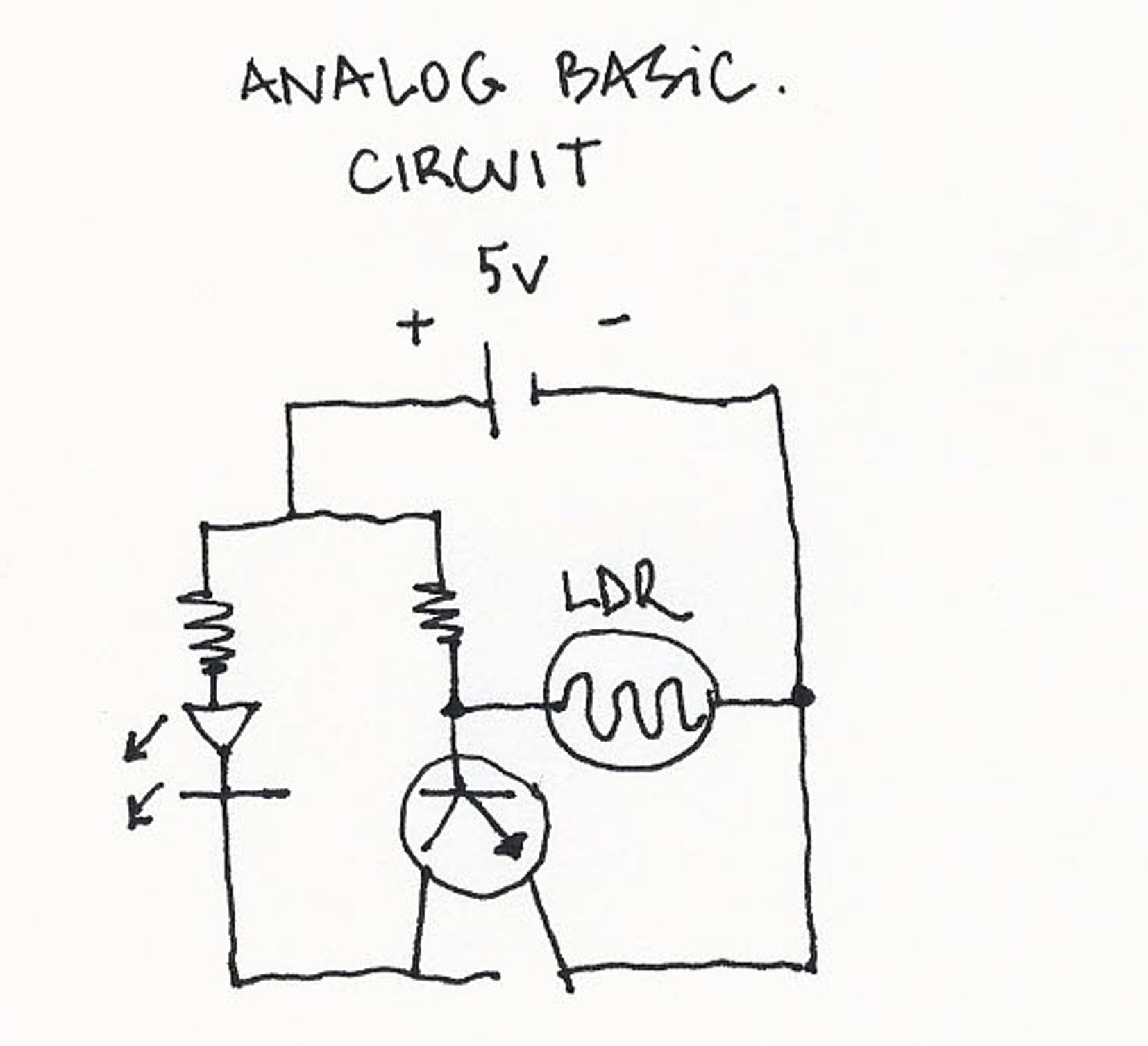 Based on an analog basic circuit. We know the LDR has a low resistance when there is light and a high resistance when there is not light.
