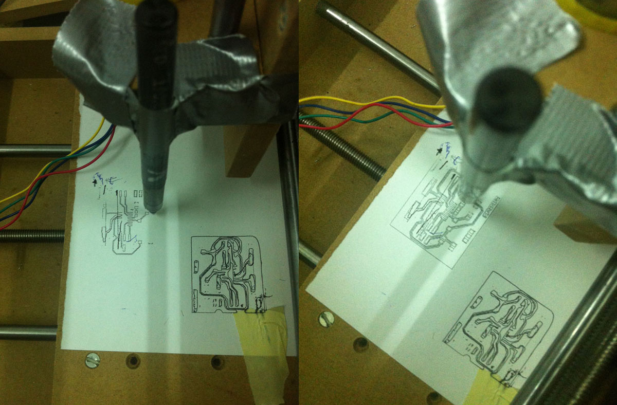 We have install a 3D printed piece to attach a pen to it and see if the electronics are working properly. We have observed that when the gcode is quite large, we lose some steps.