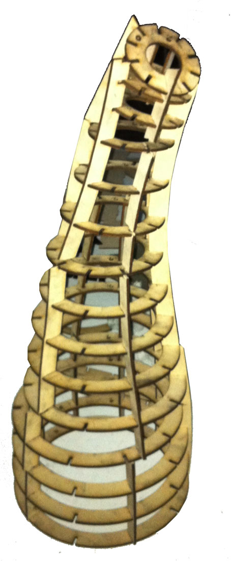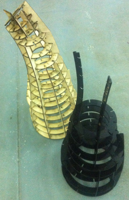 2_ Plywood 3mm_The second test was an attempt to redo the same shape but using plywood that it is more flexible that the acrylic, it did not work either and it was a really dirty finish.