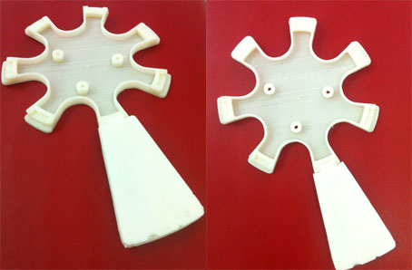 We needed an starting point, one piece moving first, this component was place at the center and had a motor. The motor moved the mechanising and this made the "flower" rotate in a certain direction, we could realized the other flowers surrounding this one were moving as well as this first one. creating a field that was using just the magnetic force imput to move.