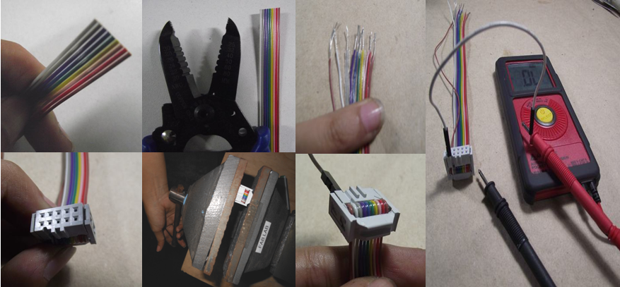 * Wire rabbon cable (in our case we only had a 9-conductor cable, sowe had to add aditional cable to complete the 10-pin) and stripping wires.