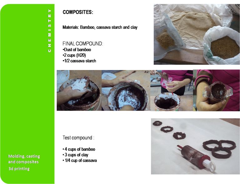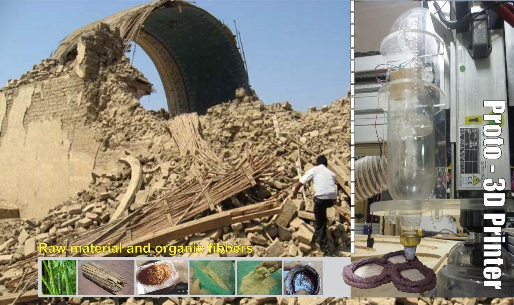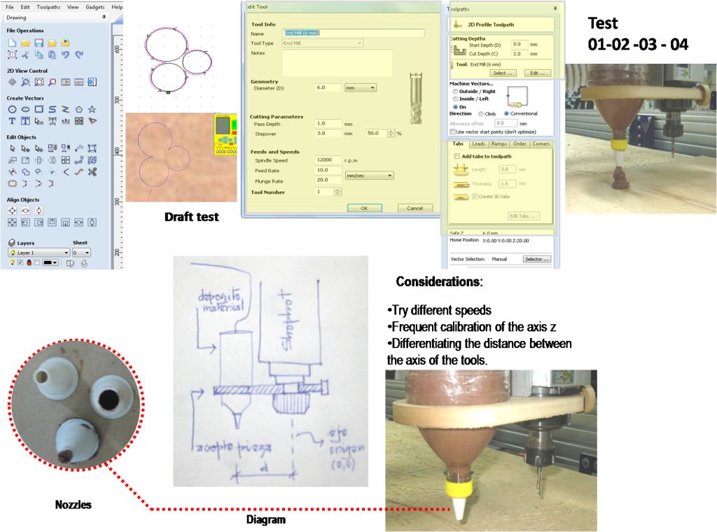 The design of the first prototypes has sought the most economic possibilities considering an organic material as printing compound. One of the most important topics was Molding, casting and composites as we could experiment with the generation of several compounds until we arrived at the most suitable consistency for printing. We experimented with traditional clay mixtures, the material undergoes a drying process faster, when is in contact with the environment, which allows to deposit a new layer without crumble the design.