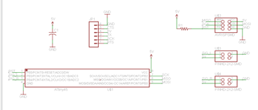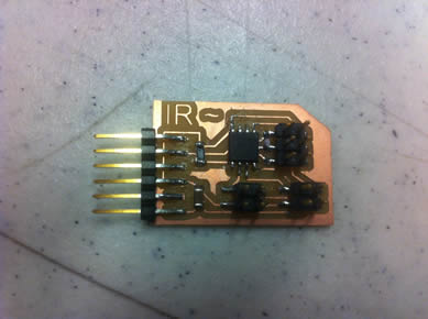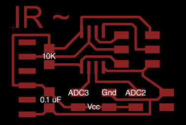 To integrate these sensors into a fab-able input device circuit board I first studied the sample Hello.Light and Hello.Mic boards. I was then able to translate a similar circuit within Eagle, and was able to fab the board seen above. I used the same input as the Hello.Light board so I could use the same C file, and python script verbatim. There was also an unused gpio pin that is used in the circuit with hopes of implementing the second sensor.