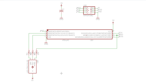 After many attempts to communicate with the circuit, and many revisions I'm not quite sure what my issue was. I think having one of the led's connected to the MISO programming pin may be a possible cause. Perhaps having connections to this pin adds too much resistance and prevents the proper communication.