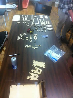Some students were able to make the missing lasered components, and adjust the others. This was done to change many of the components from metric to standard imperial. Due to sourcing in North America we were able to save money by converting the rods and pulleys among other parts.