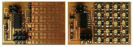 This weeks we made printboards with an output device according to Neils examples, and manipulated the code to make it do something (else). I made one with an RGB LED and one with a LED array: