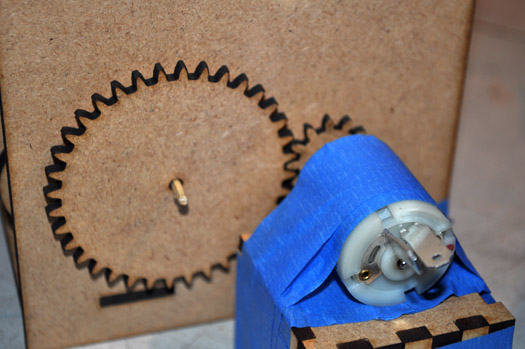 - In the end the motor was driving the gears, but attached to the automata it did not get the monkeys moving smoothly. The automata worked nicely when operated manually, but when we attached the two systems together it jammed. A solution would be to put bearings in the system. This would require a redesign, which would be great to do. But for now we learned what we were aiming to learn!