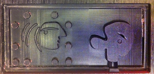 > machining the positive halves in a wax block; first a roughing job and then a finishing job