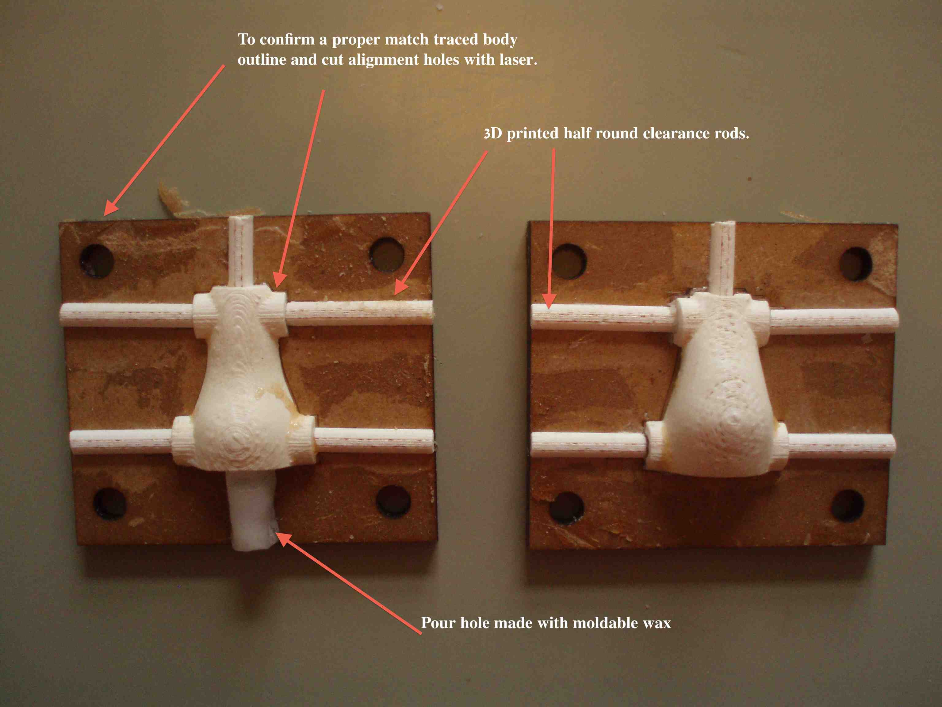 The 3D printer was not able to deliver at the rate necessary to complete the project in a timely manner therefore molds were created for the head, body, and arms.