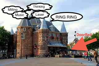 Doorbell to enter Waag Fab Lab rings the telephone which frequently is not heard.