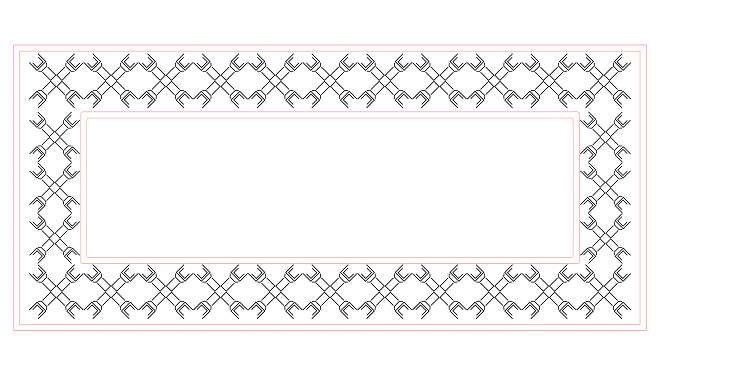 I was then able to open the design in Inkscape and manipulate it to create a rope style border around the frame. When I actually cut the frame on the Shopbot I will recess the entire border 1/8" and then do relief cuts so that the rope design is raised 1/8".