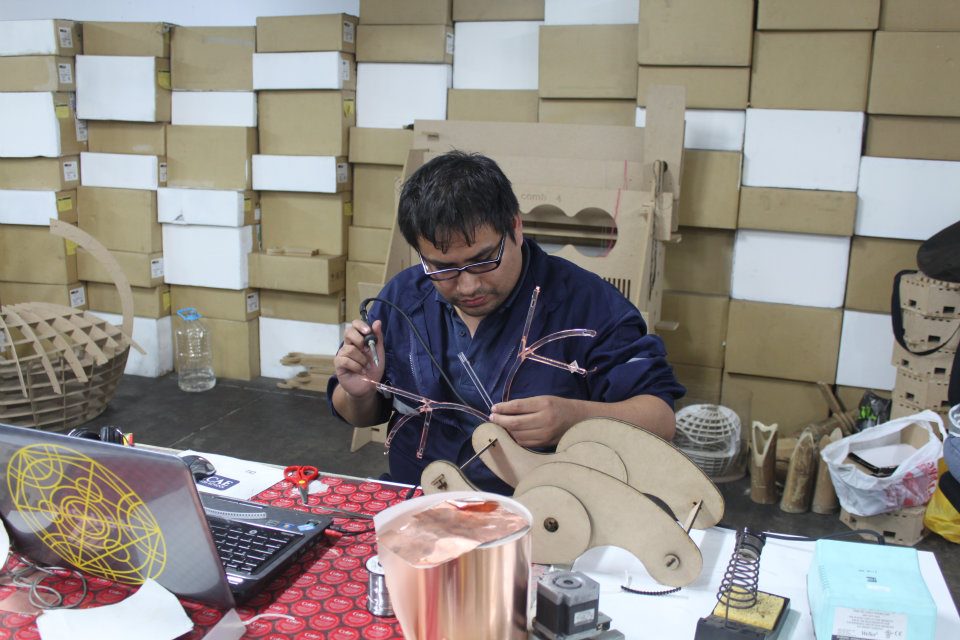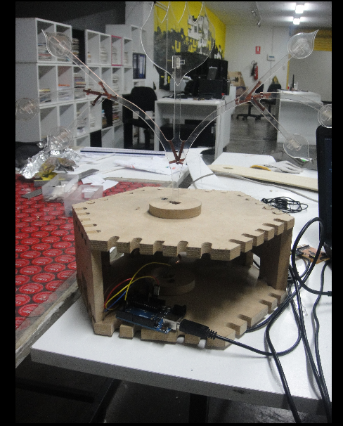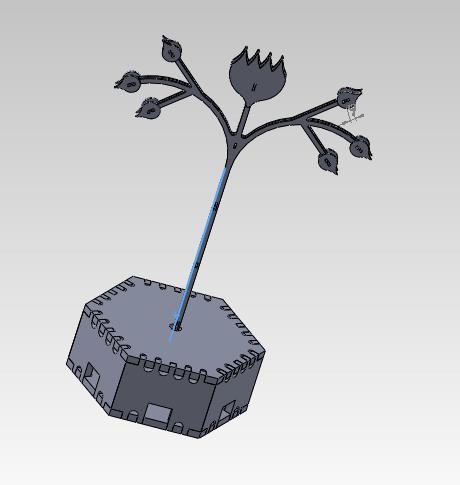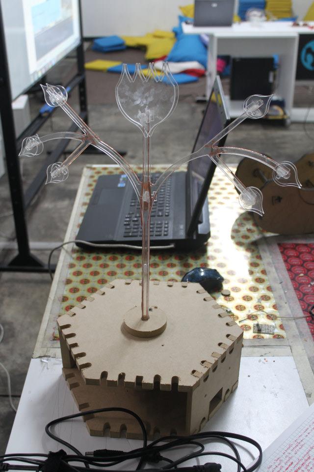 I used Solidwork for the design of flowers, it manufactured with 3mm and 5mm acrylic in the laser machine, and used for connections flexible copper,