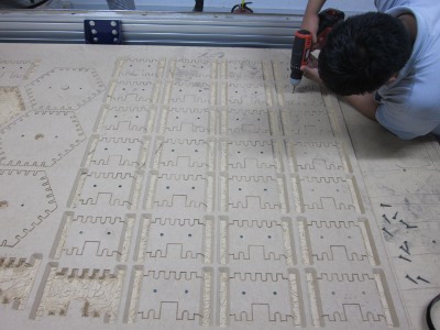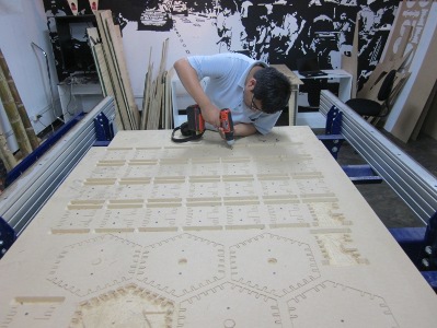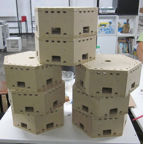 I build 8 hexagonal cells joined by press-fit, At first consideration is to the material, MDF use which