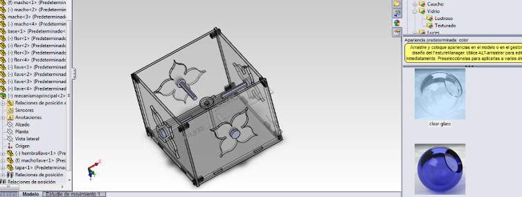 Another feature is that Solidworks cab add textures, in this case, I choose glass |