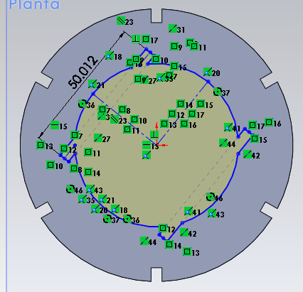 The circle radius is 50mm and an inside circle of 30mm,to make room for unions of petals, space in the inner circle is to fit another piece.The petal design it by defining the space with an area of ​​auxiliary lines 20x20mm, using curved lines and a circle of radius 10 mm, watch