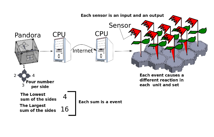 As part of my final project, developing the second component, the structure of the artificial environment q. Inspired by the project Fluoralife You can see the video Progress Description: Concept Nature is determined by a number of simple events and the sequence of events generated by the complexity and chaos, difficult to determine, intend to generate a nature que pueda information and feed back in response from an event generator, There are two components to this The Pandora's Box ![]() Pandora is the first component in each of their lateral sides have a flower 4 petals with numbering of 1 to 4, depending on the combination defined by the user and the return of another variable This will open, is like a simple game, This box can generate totals from 4 to 16. Still not solve the total central mechanism ewhich end up in the course of the other assignments. El Jardín ![]() ![]() The Garden is the second component, is where are to be received inputs generated by the box Pandora, each unit has a hexagonal shape, each side has one input and output for connecting sensors, so you can join each of the hexagons in any order, and unite from all sides of each hexagon, each joint causes a different event in both input and output. The set of these units call it the garden, these units behave as flowers, where each output is the input of the next unit.
