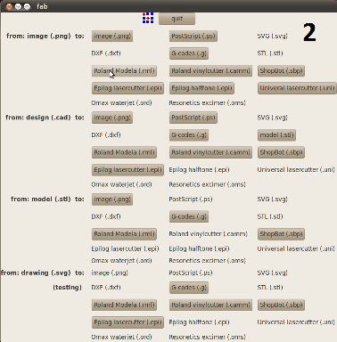 We do the "milling" in the "Rolland Modella" For this process we use the "Fab-tools". Calibration is done by framing the X and Y axes using the software in the image 4, Z axe is set with the "up" and "down" butons, very carefully until the mill touches the plaque and adjust. Set up the machine, we describe the next steps for manipulation: