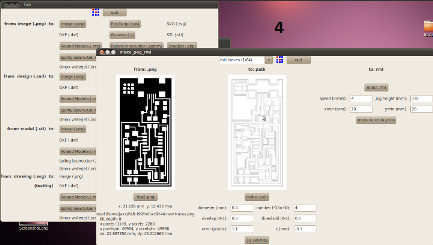 --Step 1: Open a console and type "fablab" --Step 2: Choose add the file with "from image (.png) to" --Step3: Choose the correct mill and the path( mill traces (1/64)), number of times (number (-1 to fill), I chose 4 times --Step 4: Depth in Z, the cooper plaque 0.75mm, so -0.1mm of depth
