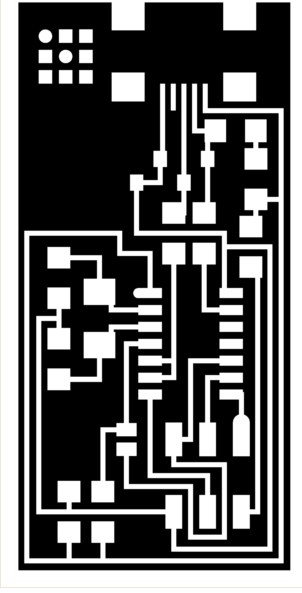 This "PNG", shows the board, tracing area and cutting area, tracing area is the path that the mill will go by in the plaque, were the components will be soldered. < But as a preparatory exercise I developed the file desarrollé el archivo "schematic" in "Eagle V5.9.0" free version using GNU/Linux in Ubuntu 10.04, installed from Ubuntu Software Center. I chose this tutorial David in which are contained the schematic and the board. Downloaded, is open with Eagle and using the command "information" we click over each component to obtain data from the "package" "lybraries" and "devices", I did not have all the libraries, so some installation was required: